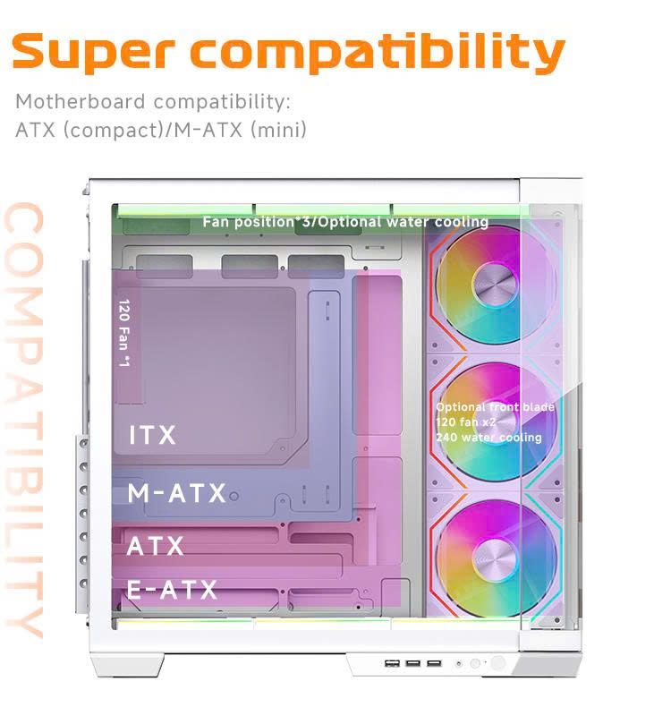 Vỏ Case Jungle Leopard AS-01 Trắng là dòng case gaming cao cấp, sở hữu thiết kế hai mặt kính cường lực, khung thép SPCC chắc chắn và khả năng hỗ trợ phần cứng mạnh mẽ. Với sự kết hợp giữa tính thẩm mỹ – độ bền – khả năng nâng cấp, đây là lựa chọn lý tưởng cho game thủ và người dùng PC chuyên nghiệp.