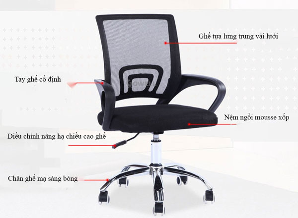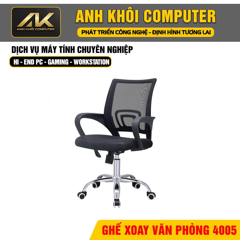 Ghế xoay văn phòng 4005 là mẫu ghế làm việc phổ thông với thiết kế hiện đại, nhỏ gọn nhưng vẫn đảm bảo sự thoải mái và bền bỉ trong quá trình sử dụng. Với phần lưng trung không tựa đầu, khung nhựa PP chắc chắn cùng nệm mouse xốp bọc lưới thoáng khí, sản phẩm là lựa chọn phù hợp cho nhân viên văn phòng, học sinh, sinh viên hoặc người làm việc tại nhà.