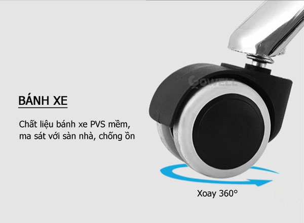 + Bánh xe di chuyển linh hoạt, bám sàn chuẩn xác, không phát ra tiếng ồn lớn