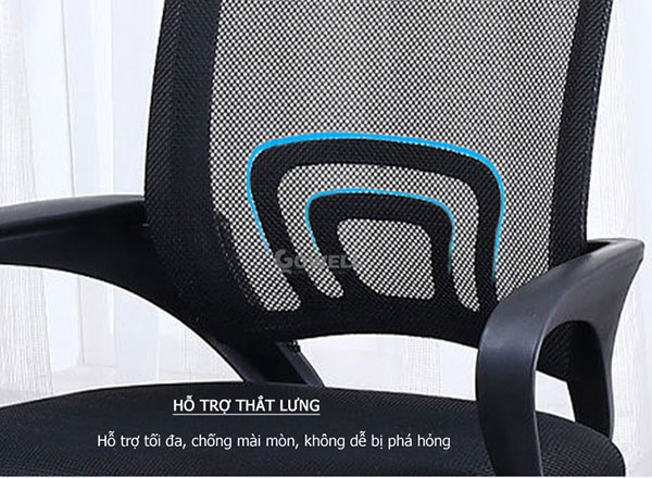 + Thiết kế ghế lưng trung. Lưng ghế cong hình chữ S vừa vặn với đường cong của lưng.