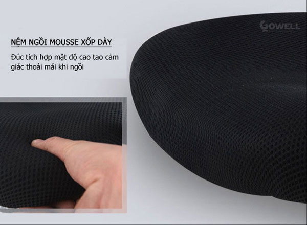 + Đệm ngồi rộng rãi với mousse xốp dày bọc vải thoáng khí